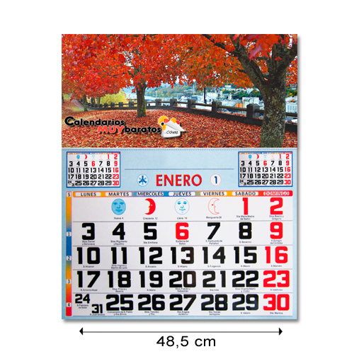 Calendario con lámina impresa a todo color personalizable, y faldilla mensual.